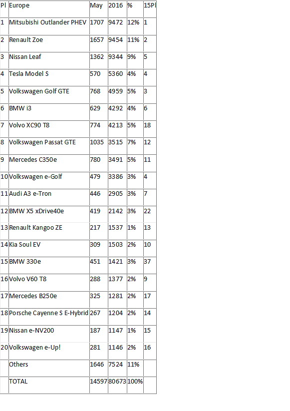 European electric and plug-in hybrid sales for January-February 2016(April 8, 2016)