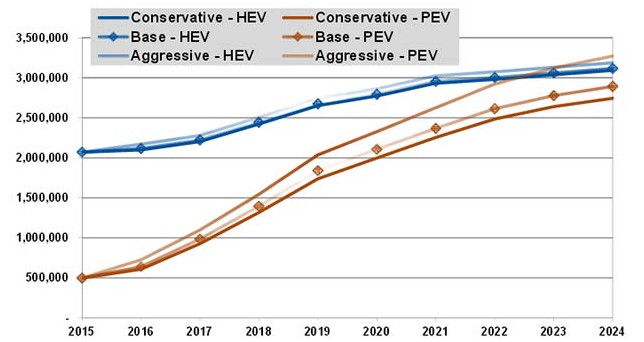 Navigant Research predicts that sales of hybrid, plug-in hybrid, and all-electric light-duty