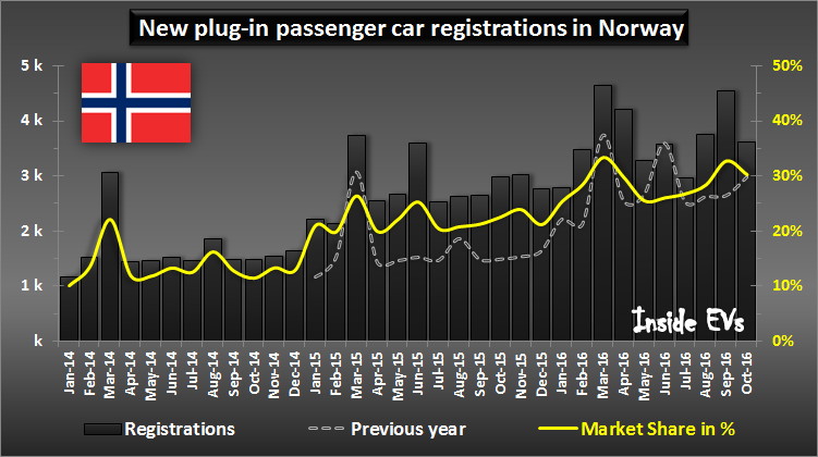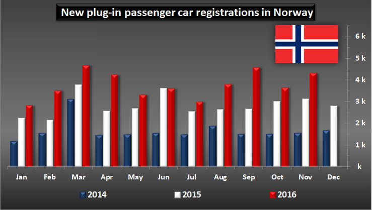 November 2016 was one of the all-time best months for plug-in electric vehicle sales in Norway.