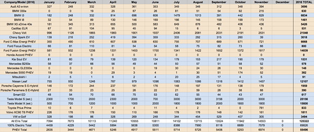 US Electric Car Sales — Up 44% In November(December 07, 2016)